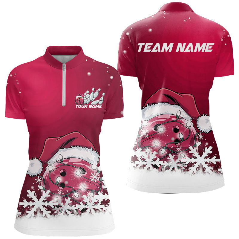 Pink Snowflake Custom Christmas Bowling Shirts For Women, Santa Bowling Team Outfit Shirt IPHW7866