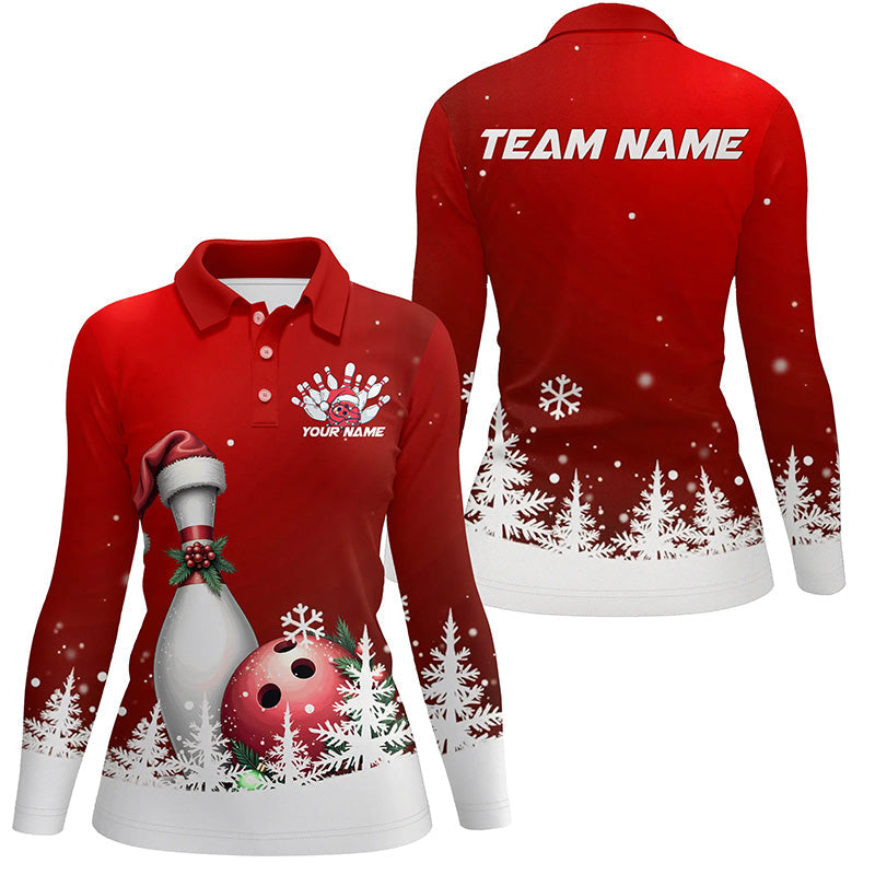 Red Snowflake Custom Christmas Bowling Shirts For Women, Santa Bowling Team Outfit Shirt IPHW7867
