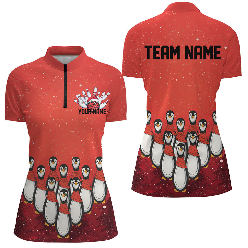 Custom Christmas Bowling Shirts For Women, Funny Penguin Bowling Pins Bowling Team Outfit IPHW7869