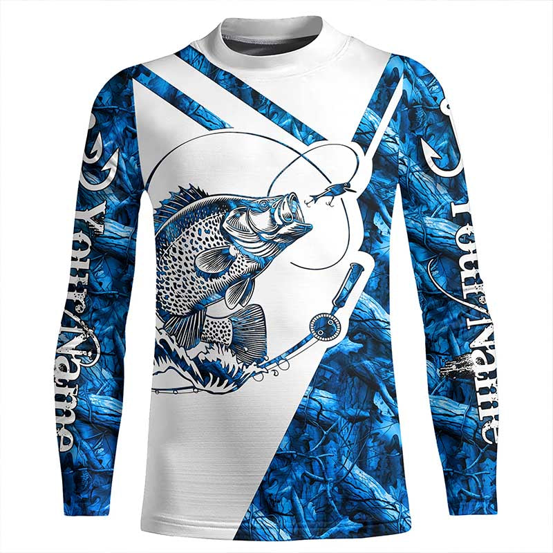 Crappie Fishing blue camo UV protection Custom long sleeves fishing shirts, Crappie fishing jerseys NQS7941