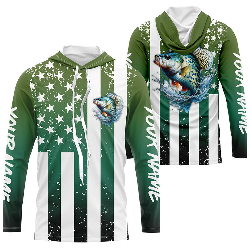 Custom Crappie Long Sleeve Tournament Fishing Shirts, Grunge American Flag Patriotic Fishing Shirts IPHW5603