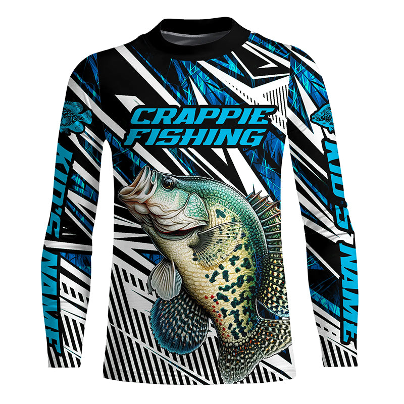 Custom Crappie Fishing Camo Long Sleeve Tournament Fishing Shirts, Crappie Fishing Jerseys | Blue IPHW5964