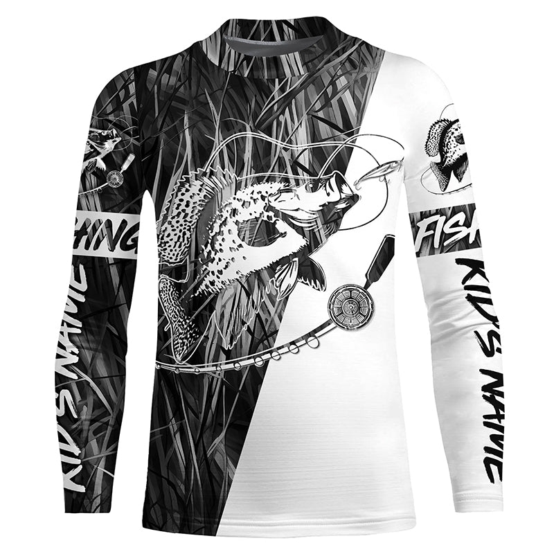 Custom Crappie Fishing Tattoo Long Sleeve Shirts, Gray Grass Camo Crappie Fishing Jerseys IPHW6346