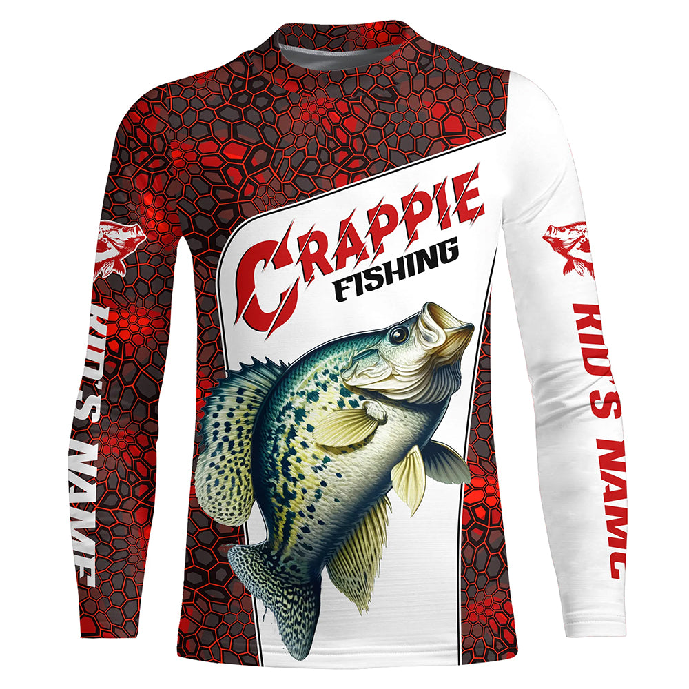 Custom Red Camo Crappie Fishing Jerseys, Crappie Fishing Long Sleeve Tournament Shirts Fishing Gifts IPHW6667
