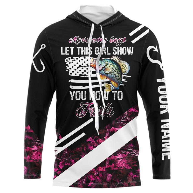 Move over boys let this girl show you how to fish Crappie fishing pink camo custom 3D fishing shirt NQS9471