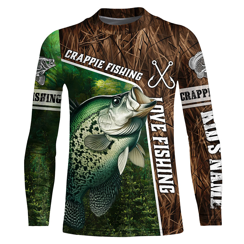Personalized Crappie Fishing Shirts, Love Fishing Camo 3D All Over Printed Shirts NQS5715