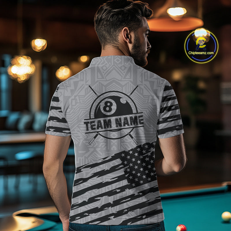 Personalized Grey US Flag 8 Ball Billiard Shirt For Men Custom Billiard Team Shirt, Pool Jerseys TDM4903