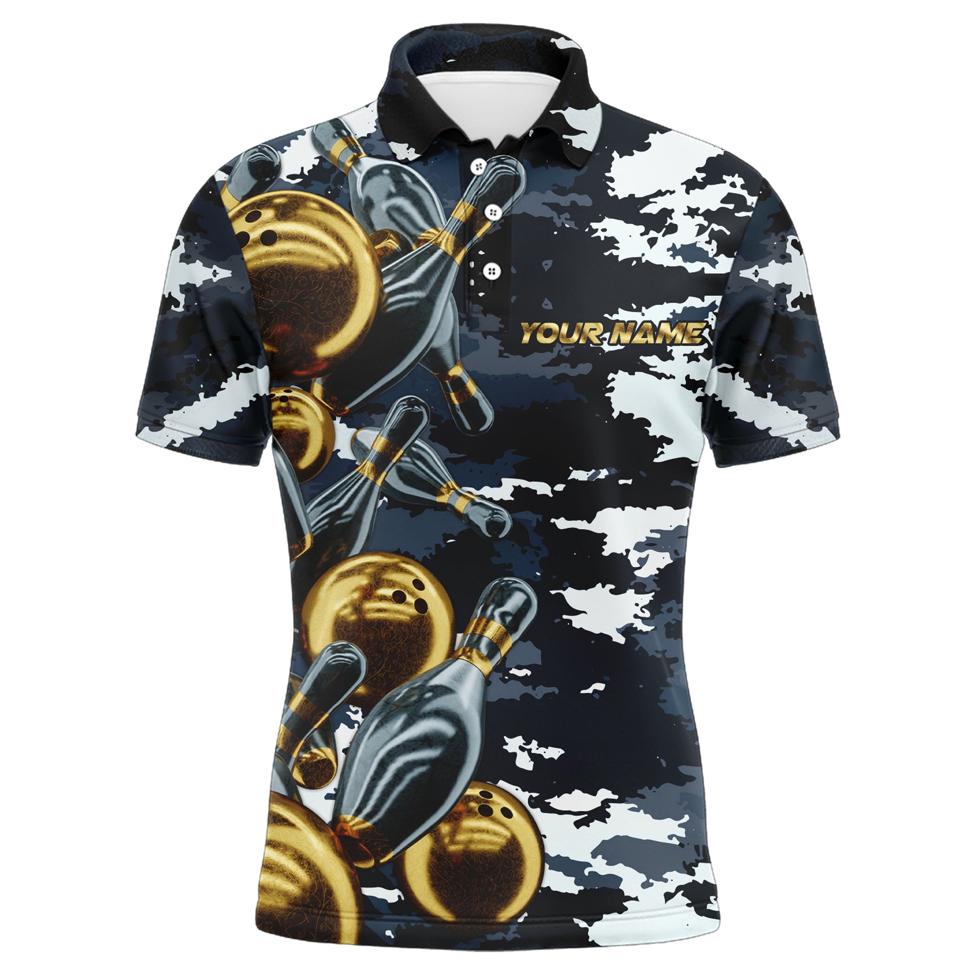 Custom Bowling Shirt for Men Camo Navy Bowling Team Jersey Men's Bowling Polo Shirt BDT41