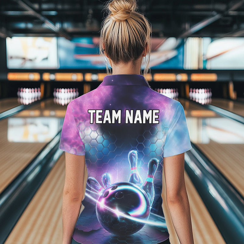 Custom Galaxy Bowling Team Women Quarter-Zip Shirts, Holographic Bowling Jersey IPHW8904