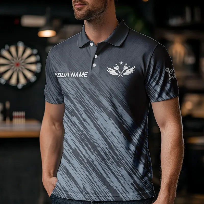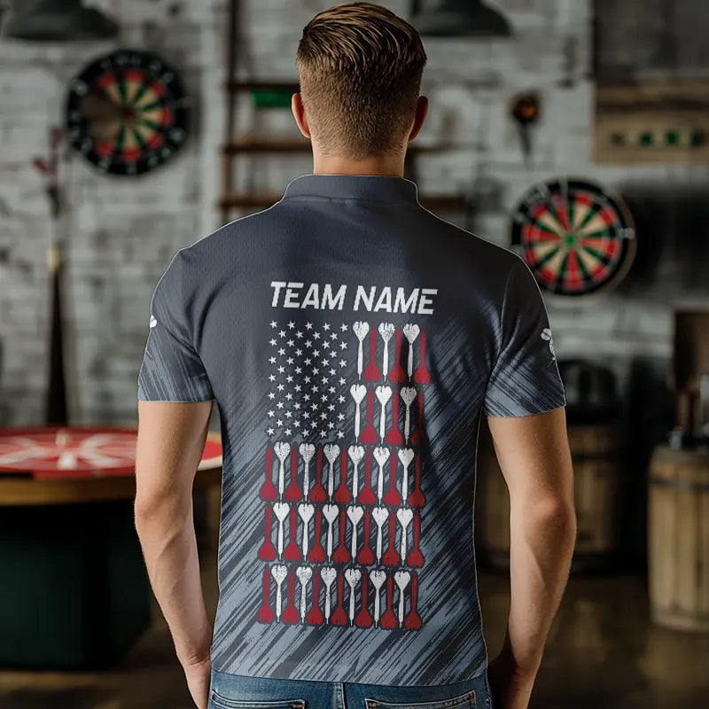 American Flag Grey Grunge Darts Polo & Quarter Zip Custom Dart Shirts For Men Patriotic Dart Jersey TDM3587