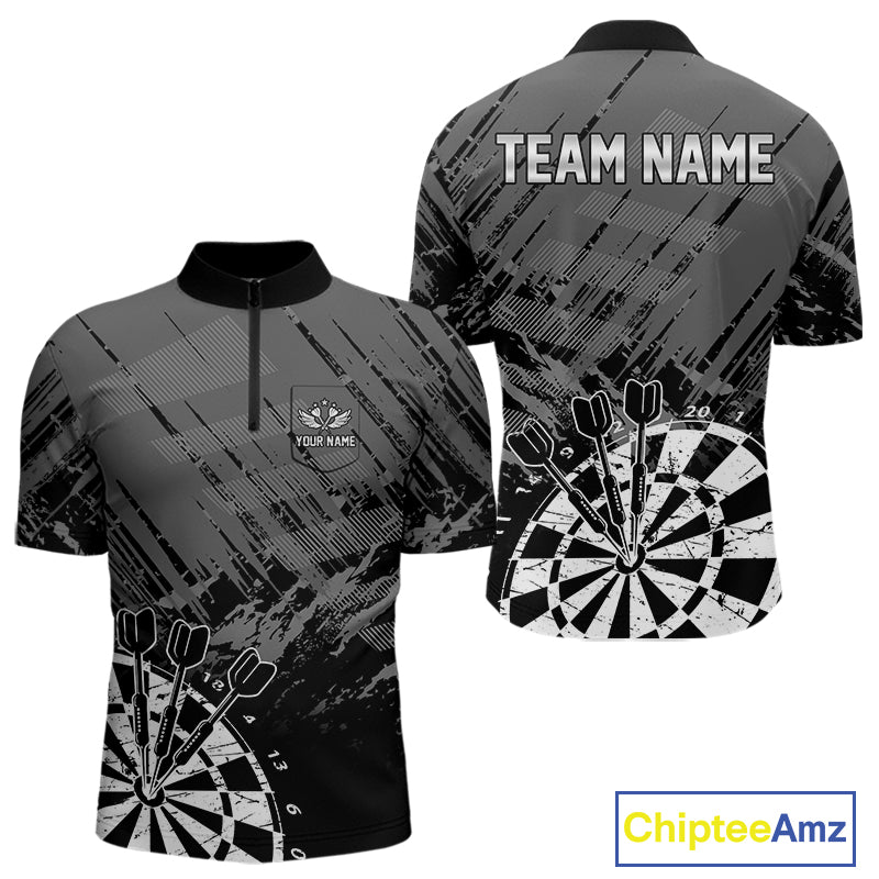 Grey Black Grunge Dart Shirts For Men Custom Dart Jersey With Pocket Option TDM4109
