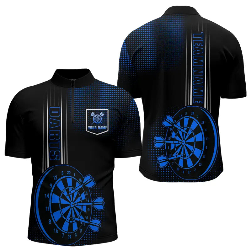 Personalized Black and Blue Darts Polo, Quarter Zip Shirt For Men Custom Dart Outfit Team Jerseys NQS9498