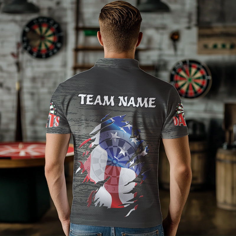 Personalized Grey Grunge American Flag Darts Shirts For Men Custom Patriotic Darts Team Jerseys TDM1558