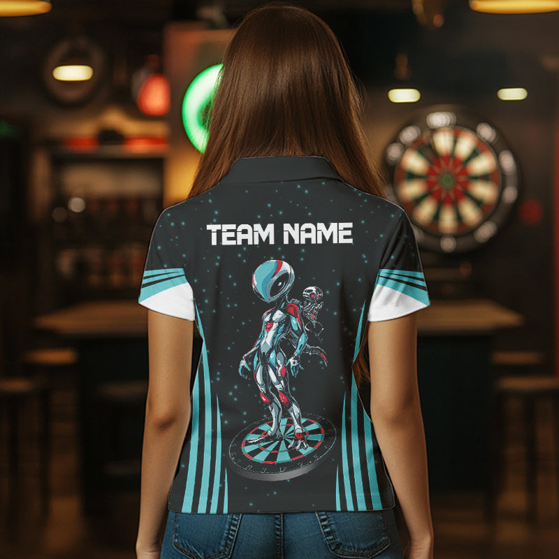Custom Turquoise Alien And Dartboards Dart Shirts For Women, Dart Jerseys NYN0027