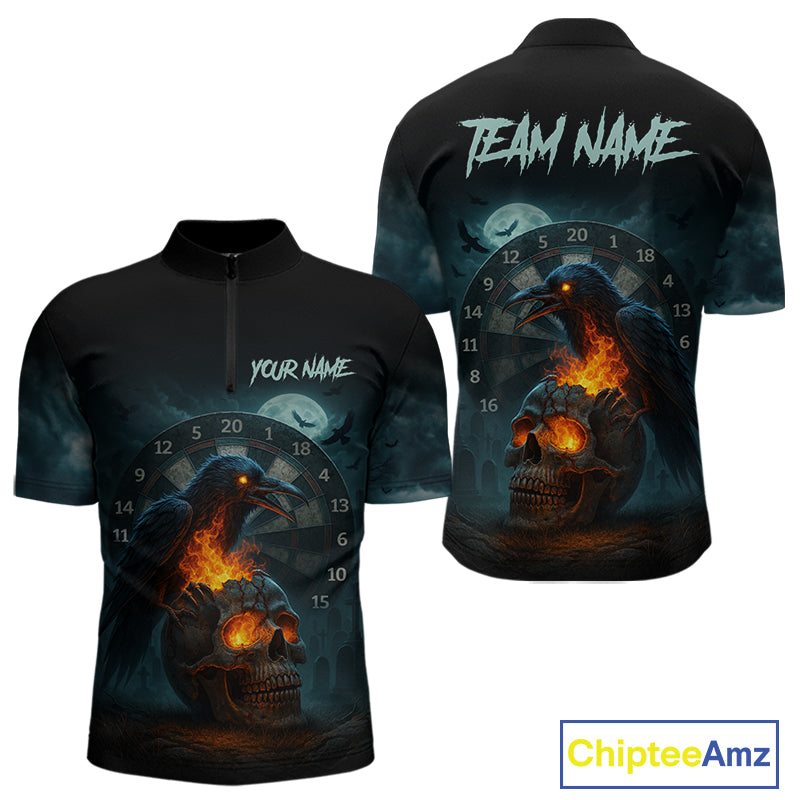 Personalized Blue Raven & Skull Grunge Dart Jerseys, Dart Team Shirts For Men Custom NYN1096