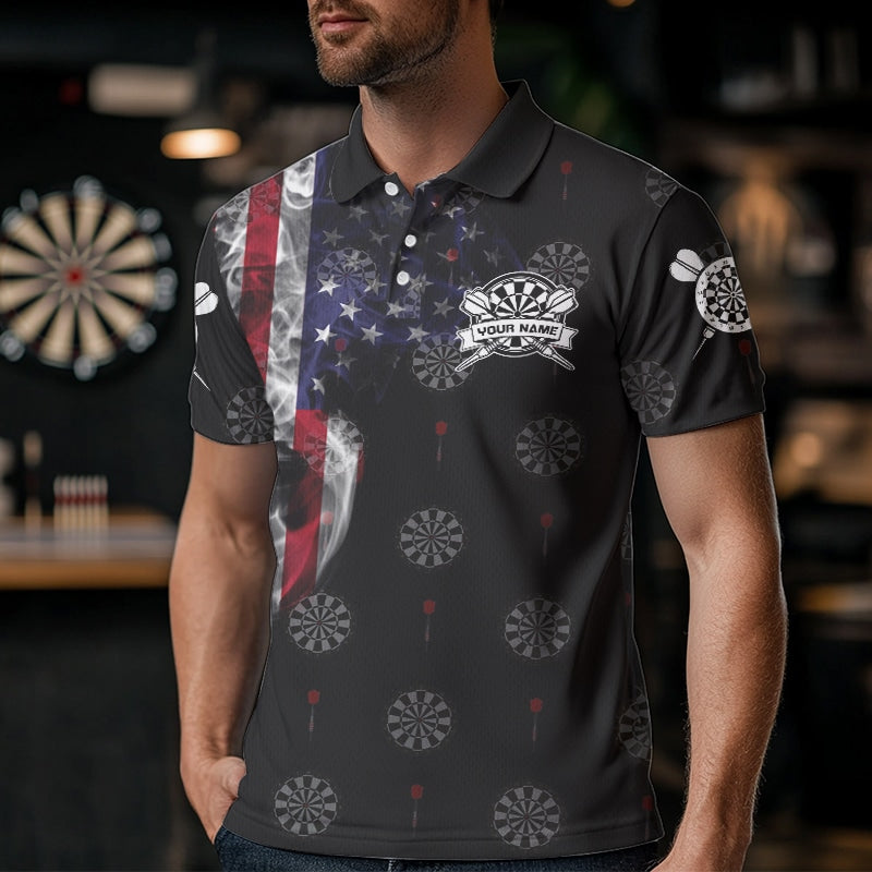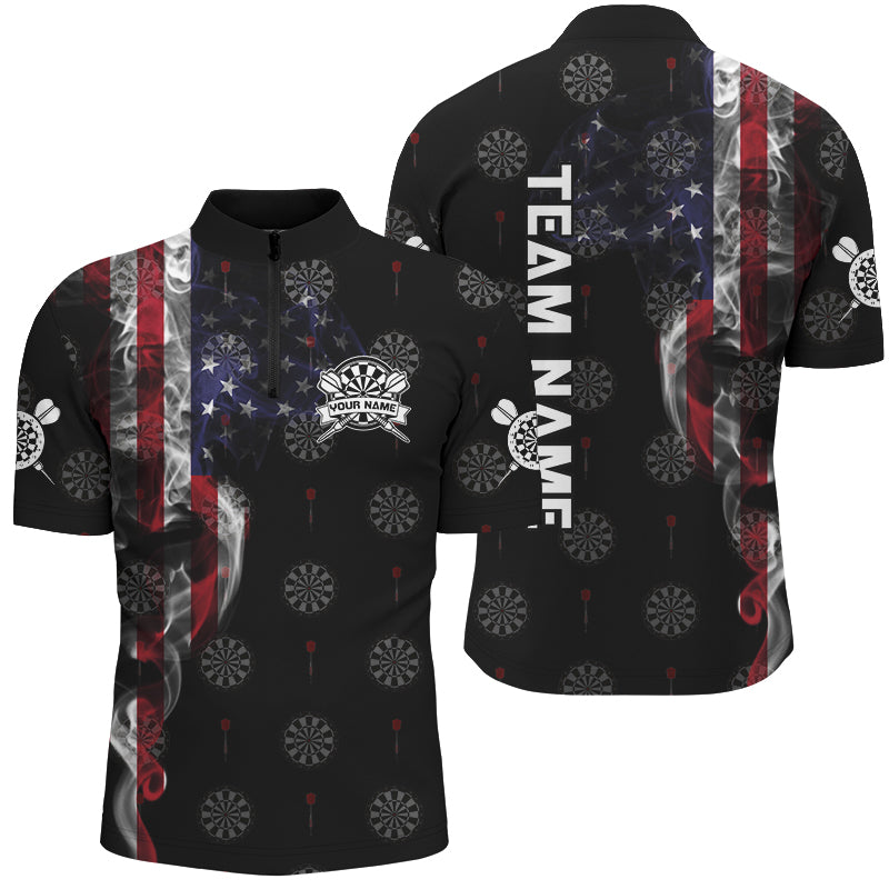 Smoke American Flag Darts Polo, Quarter-Zip Shirt Custom Patriotic Dart Shirts For Men Dart Jerseys TDM2634