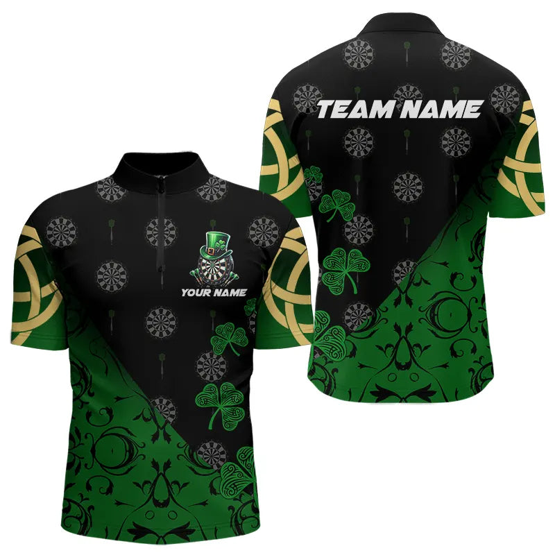 Black And Green St Patrick Day Luckiest Shamrock Dart Shirts For Men Custom Darts Team Jerseys TDM3457