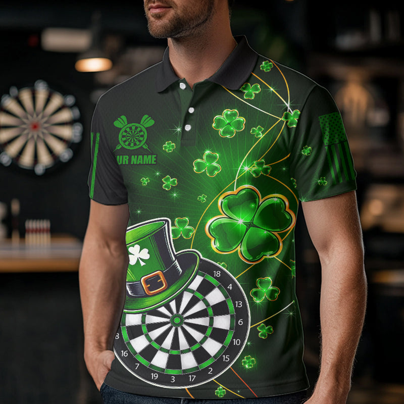 Green Glowing Shamrock  Luckiest Dart Shirts For Men Custom St Patrick Day Dart Jerseys Outfit TDM3592