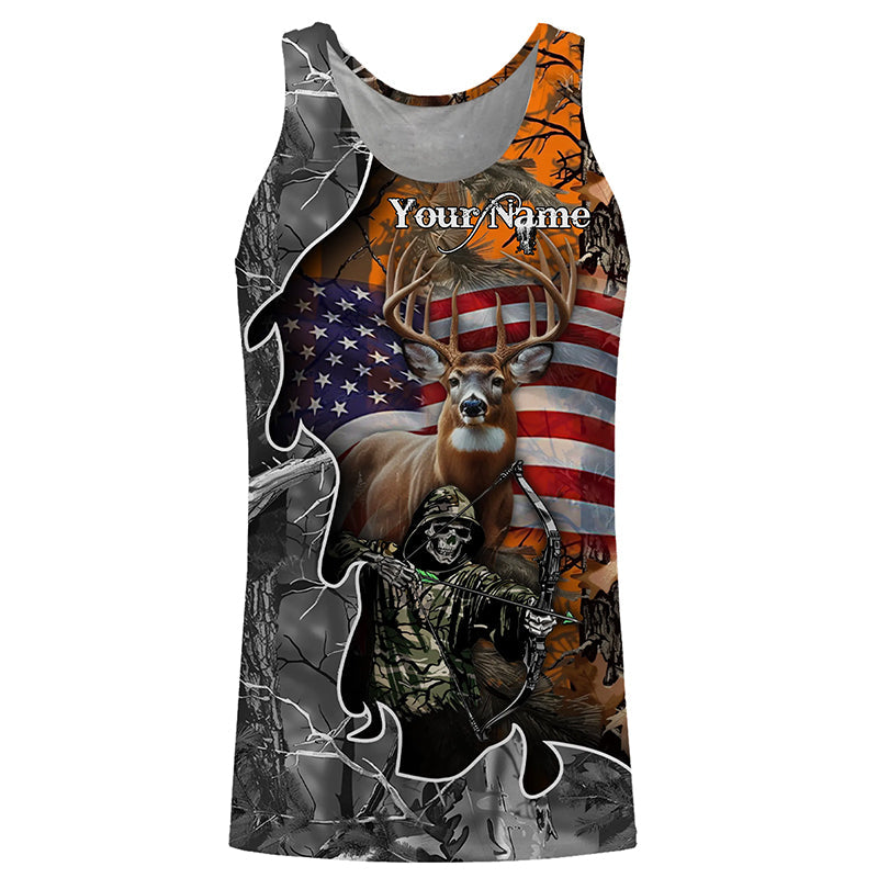 Deer Hunting American Flag Grim Reaper Custom Name camouflage Shirts for Hunters, Hunting Clothing FSD358