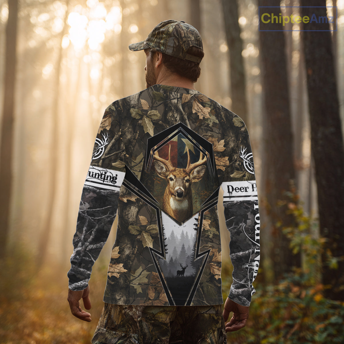 Deer Hunting Camouflage TX Flag Custom Name All Over Print Shirts, Personalized Hunting Clothes NBT110