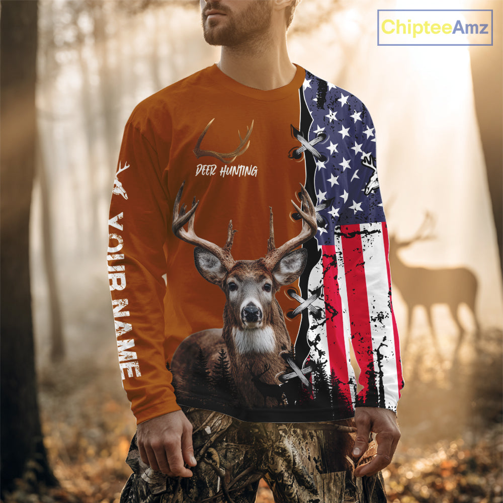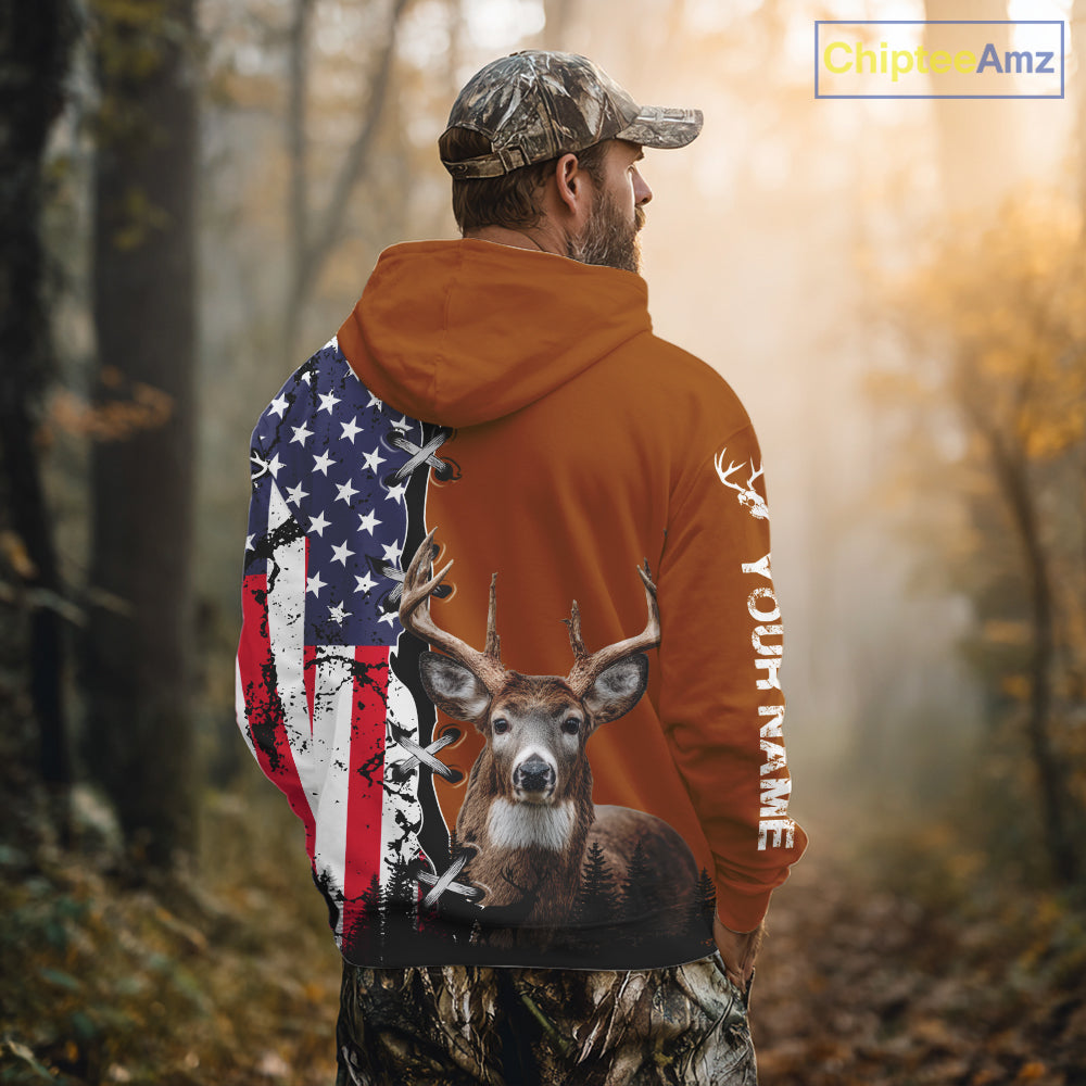 Personalized Orange Deer Hunting 3D Shirt with American Flag Design, Perfect Gift for Hunters NHT280