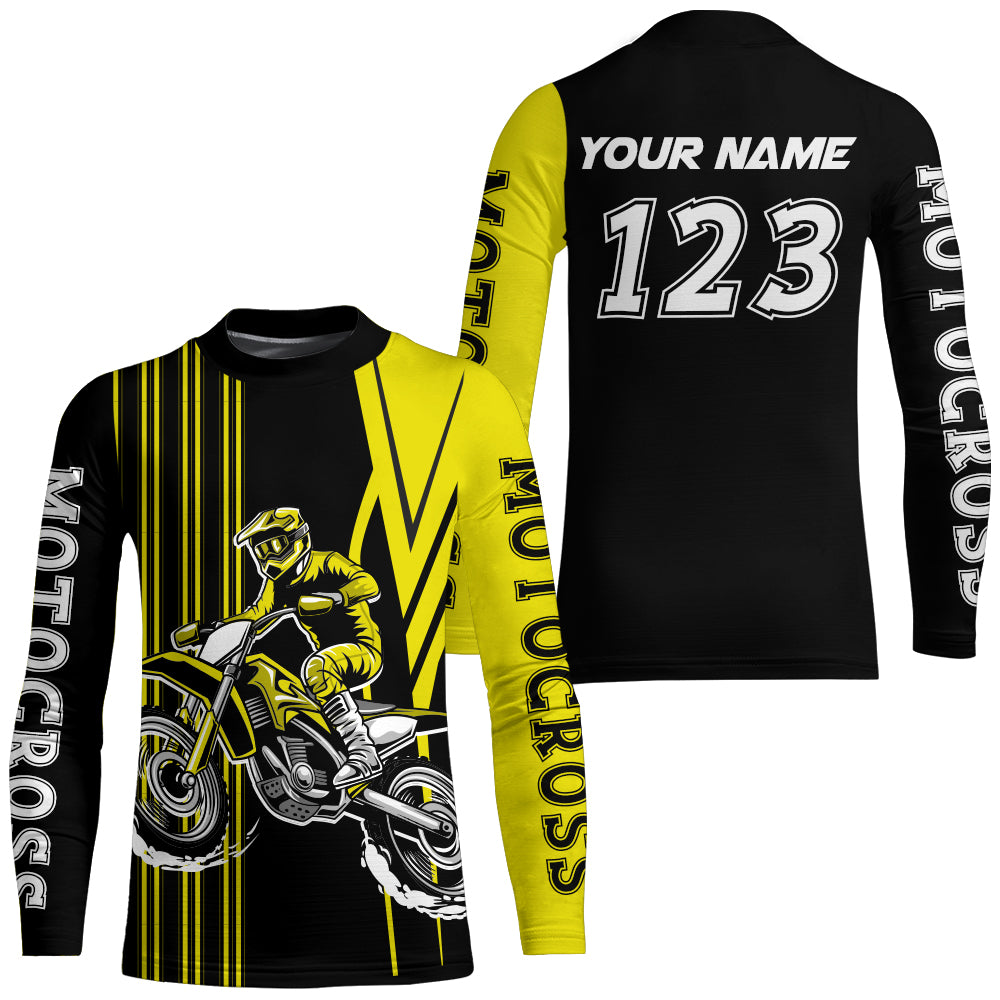 • PERSONALIZED MOTOCROSS JERSEY: This super cool long-sleeved shirt is exactly what all bikers are looking for. Add your name/number to make it a unique one that bears your own imprints.