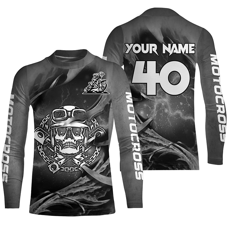 Adult&Kid Grey Skull Custom Dirt Bike Jersey Motocross Jersey Upf30+ Motocross Shirt| CTP86