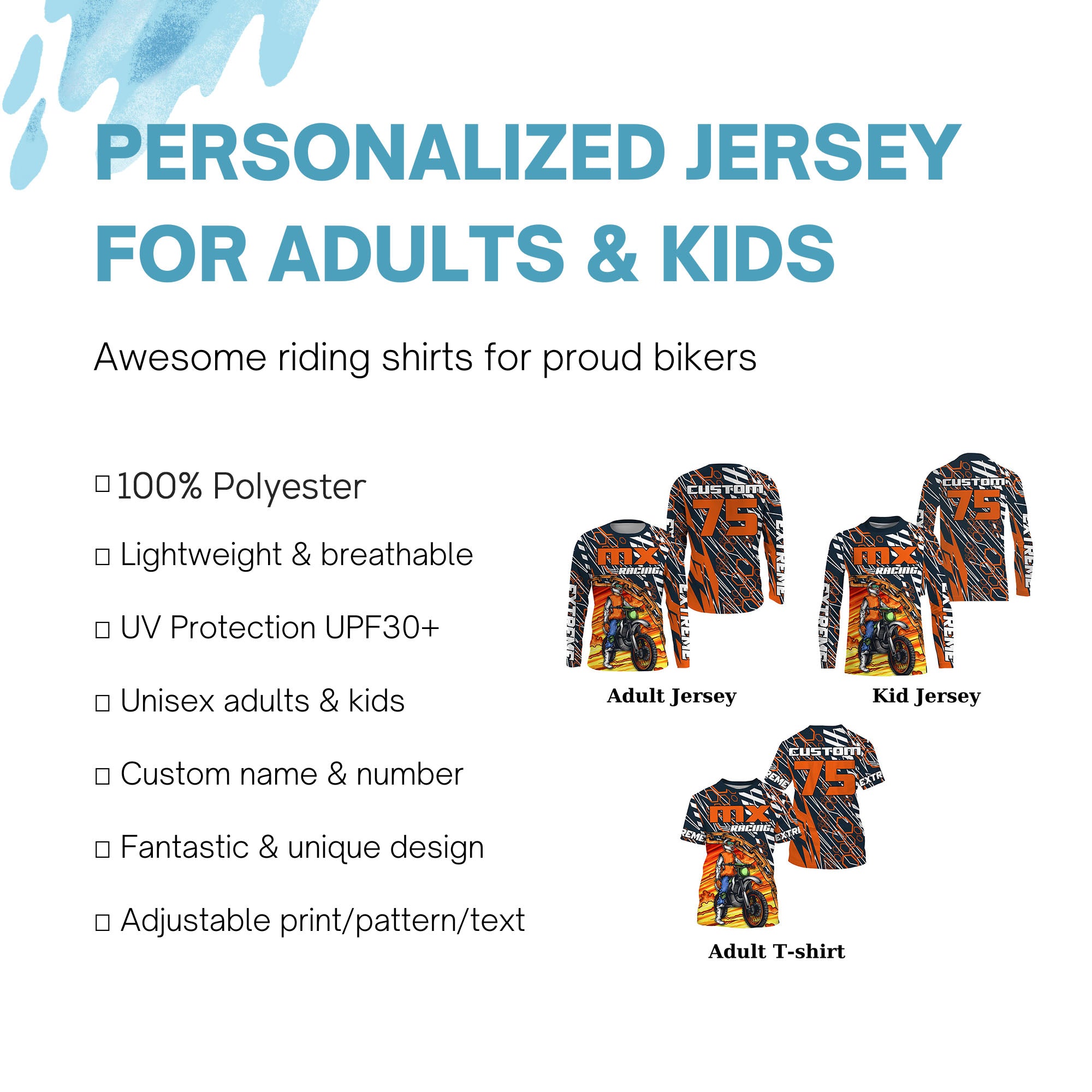 - PERSONALIZED RIDING JERSEY: This super cool shirt is exactly what all bikers are looking for. Add your name/number to make it a unique one that bears your own imprints.