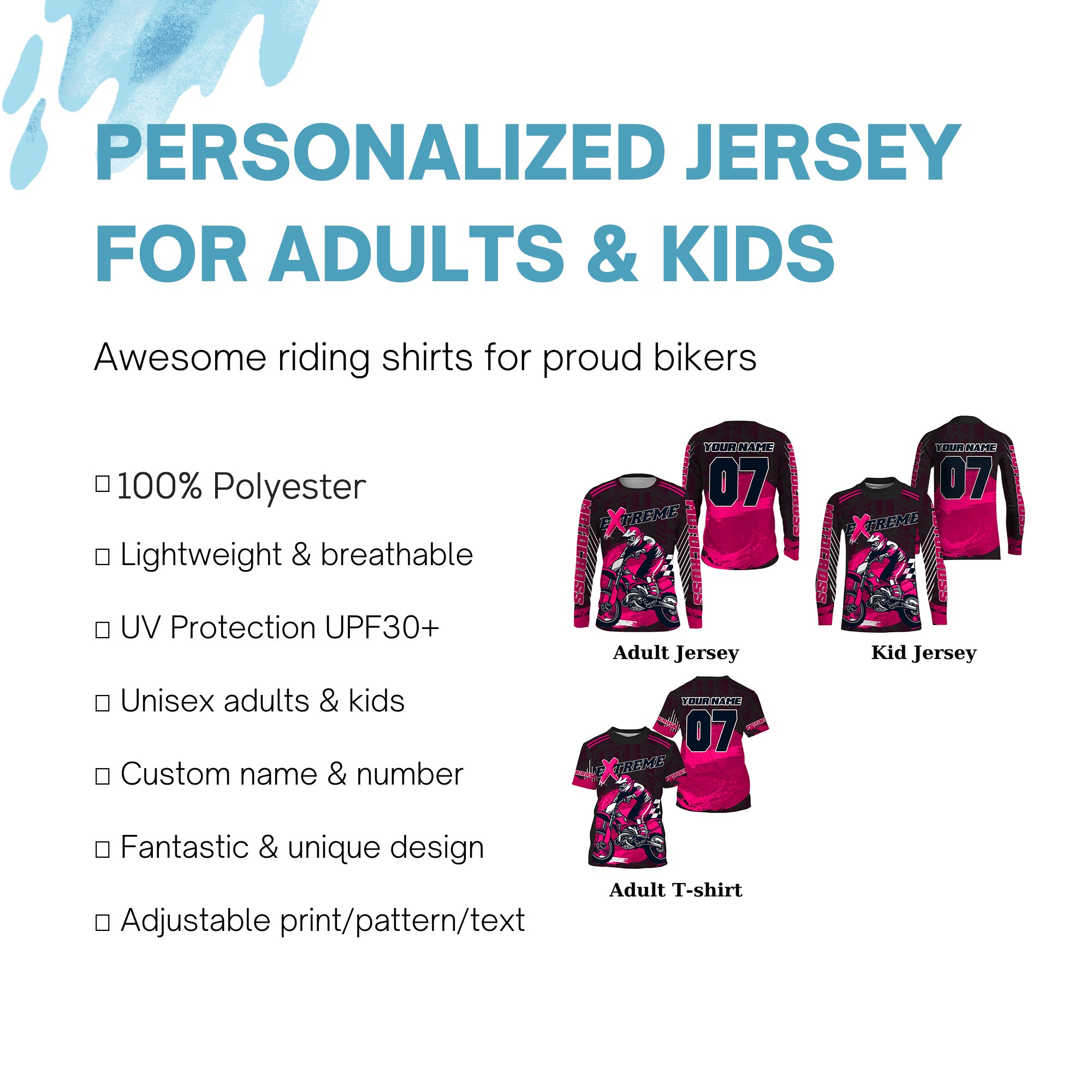 - PERSONALIZED RIDING JERSEY: This super cool shirt is exactly what all bikers are looking for. Add your name/number to make it a unique one that bears your own imprints.