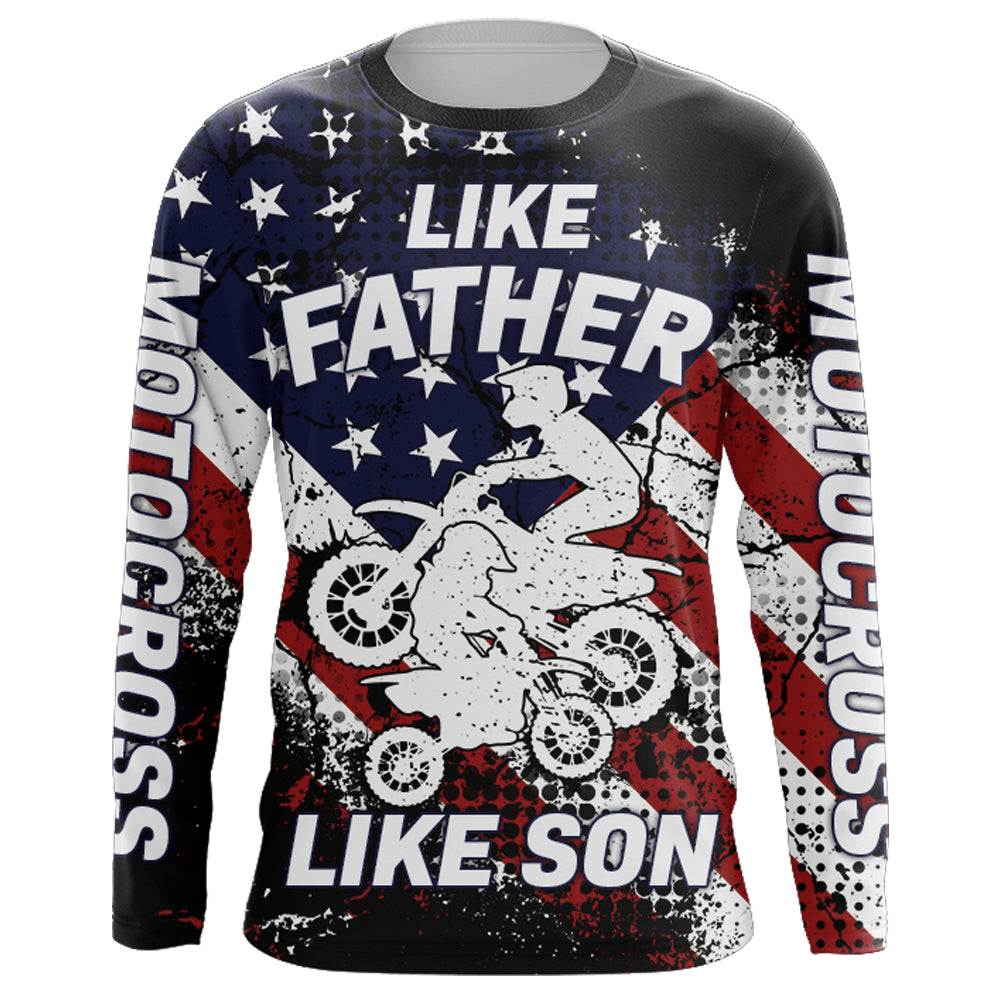 American Flag Motocross Dad Jersey UPF30+ Like Father Like Son Custom Dirt Bike Shirt MX Racing PDT486