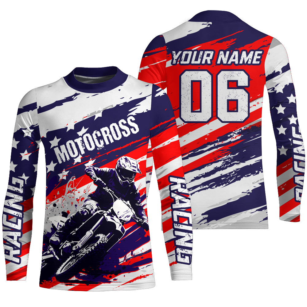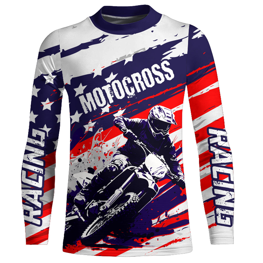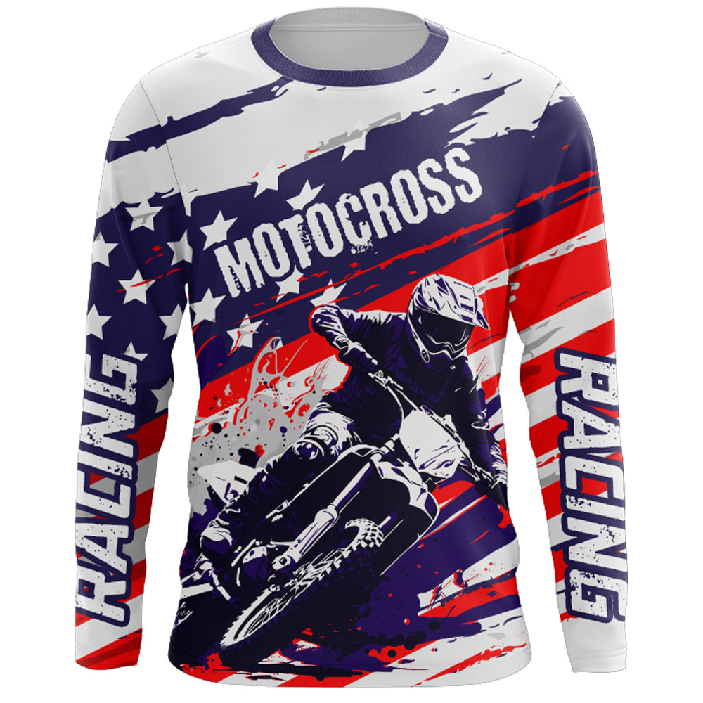 American Flag Motocross Jersey UPF30+ Patriotic Dirt Bike Racing Shirt Adult & Youth Motorcycle Off-road XM61