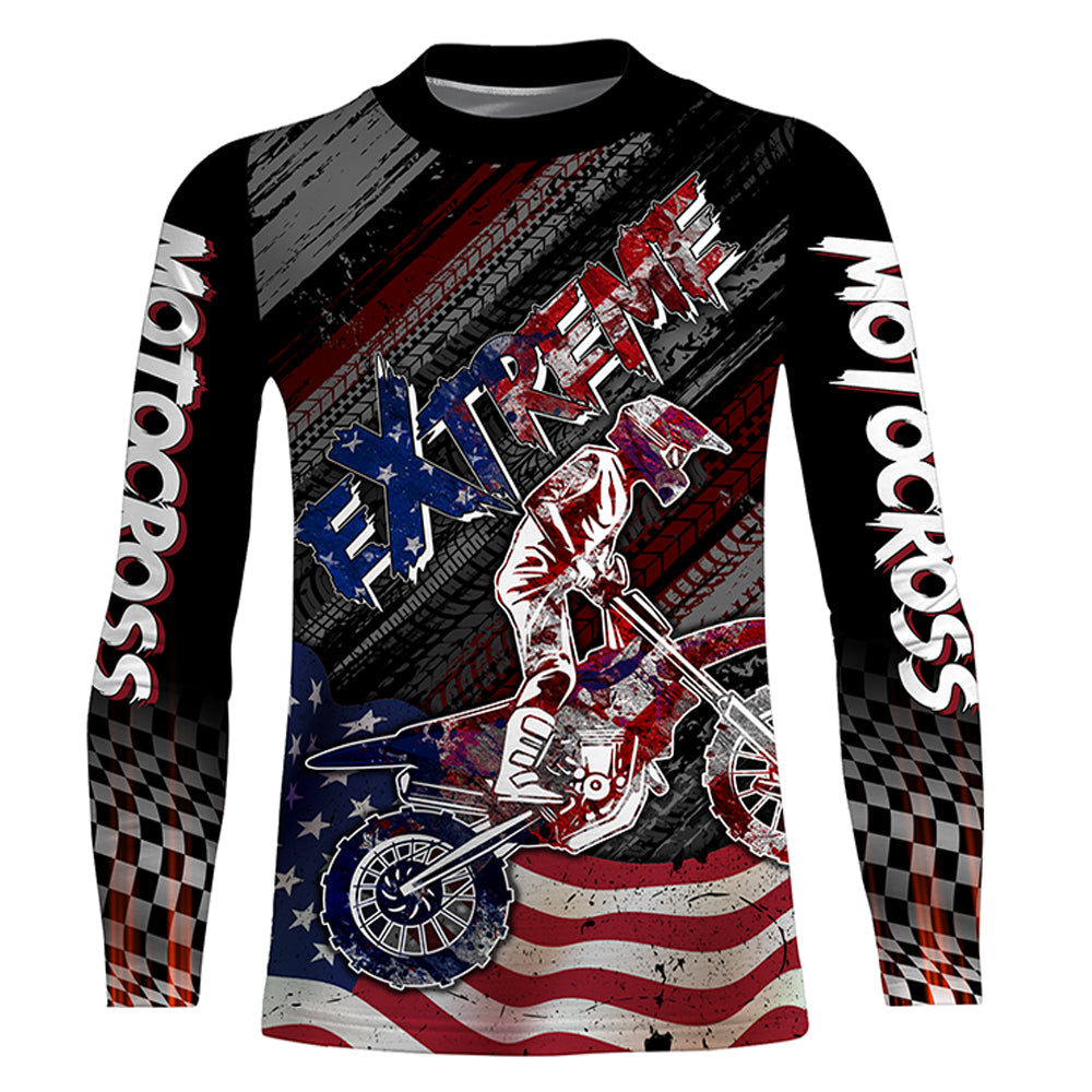 American Flag Motocross Jersey UPF30+ Youth Dirt Bike Shirt Patriotic Extreme MX Racing Shirt XM123