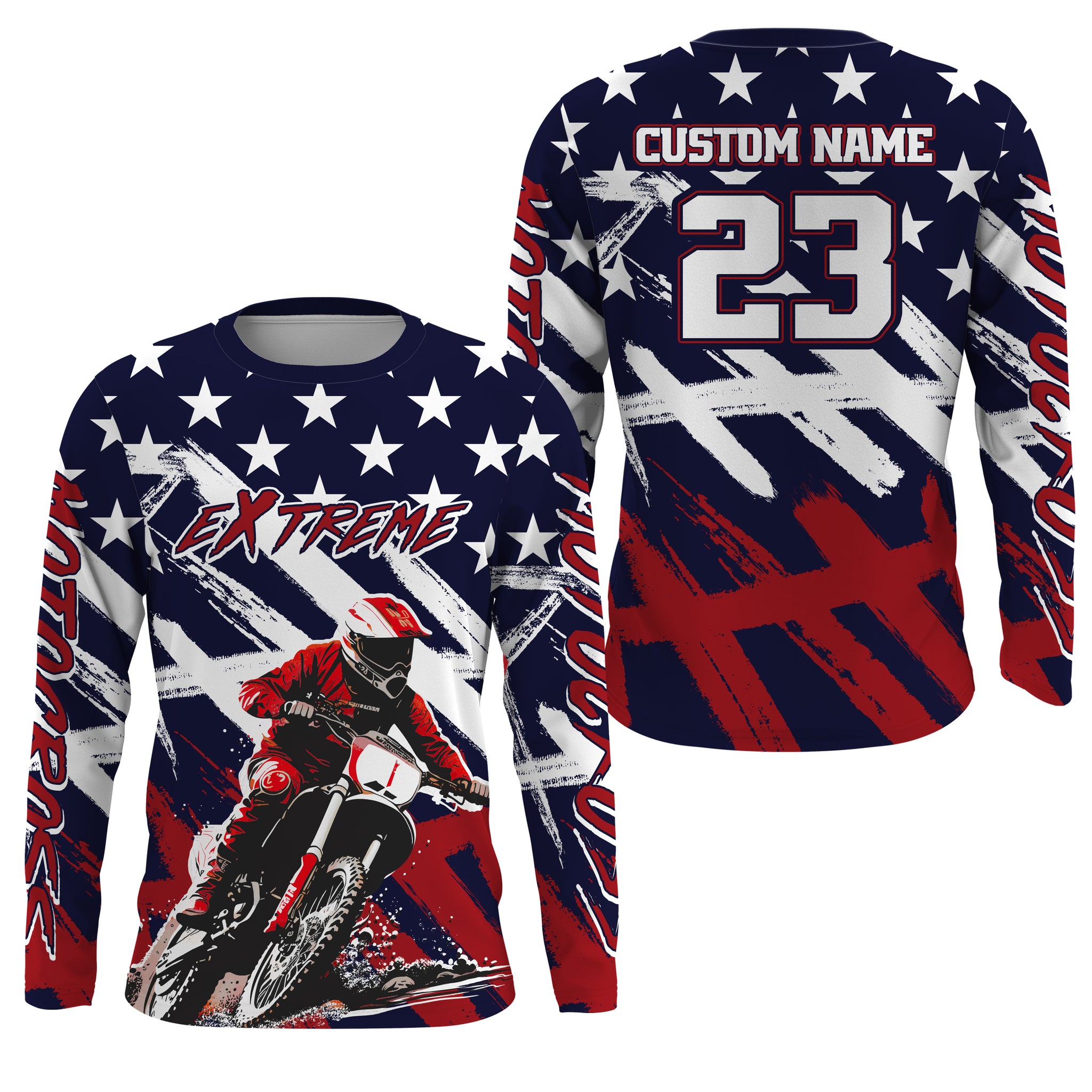 American Flag Motocross Jersey UPF30+ Youth Women Men Kid Dirt Bike Shirt Patriotic Racing Jersey XM103