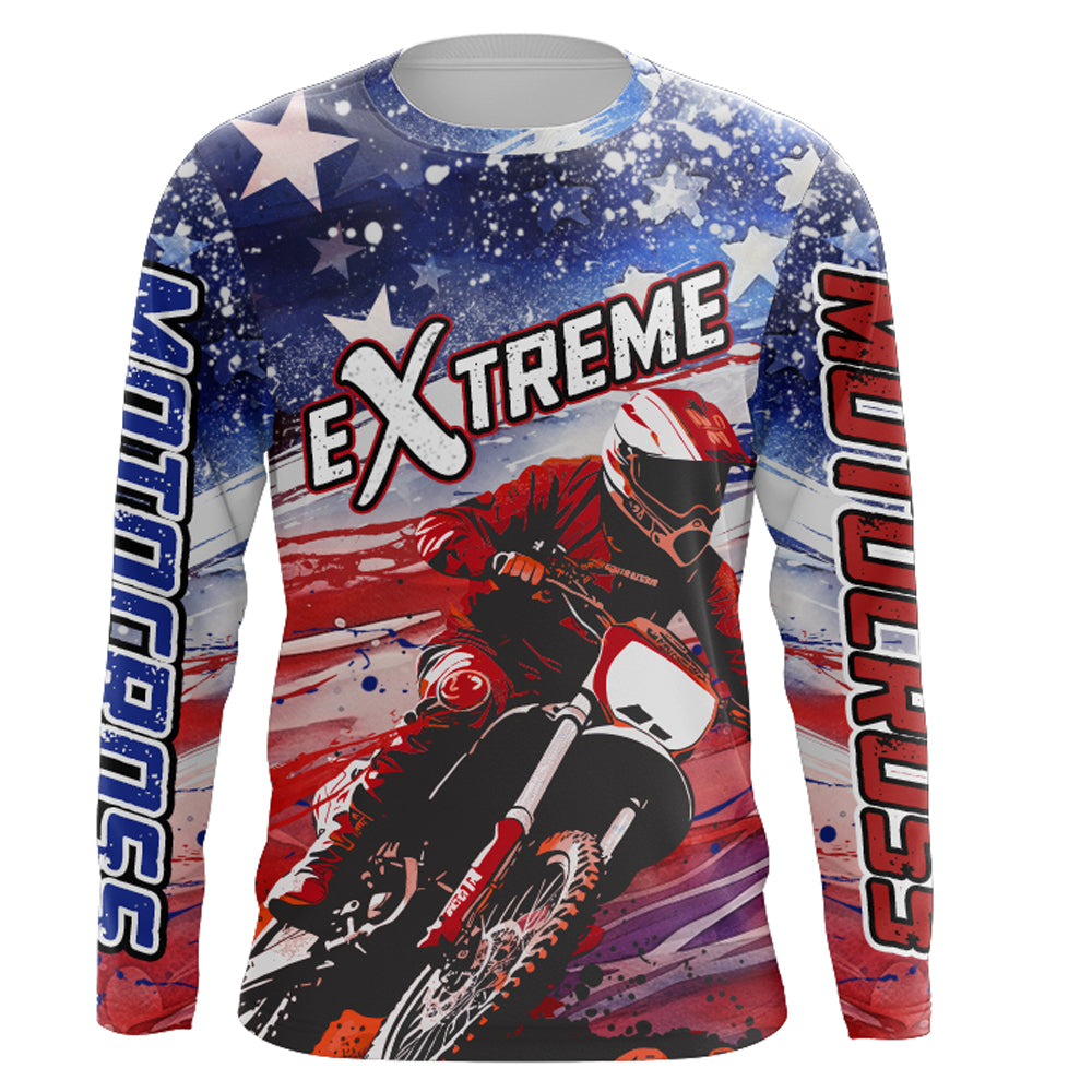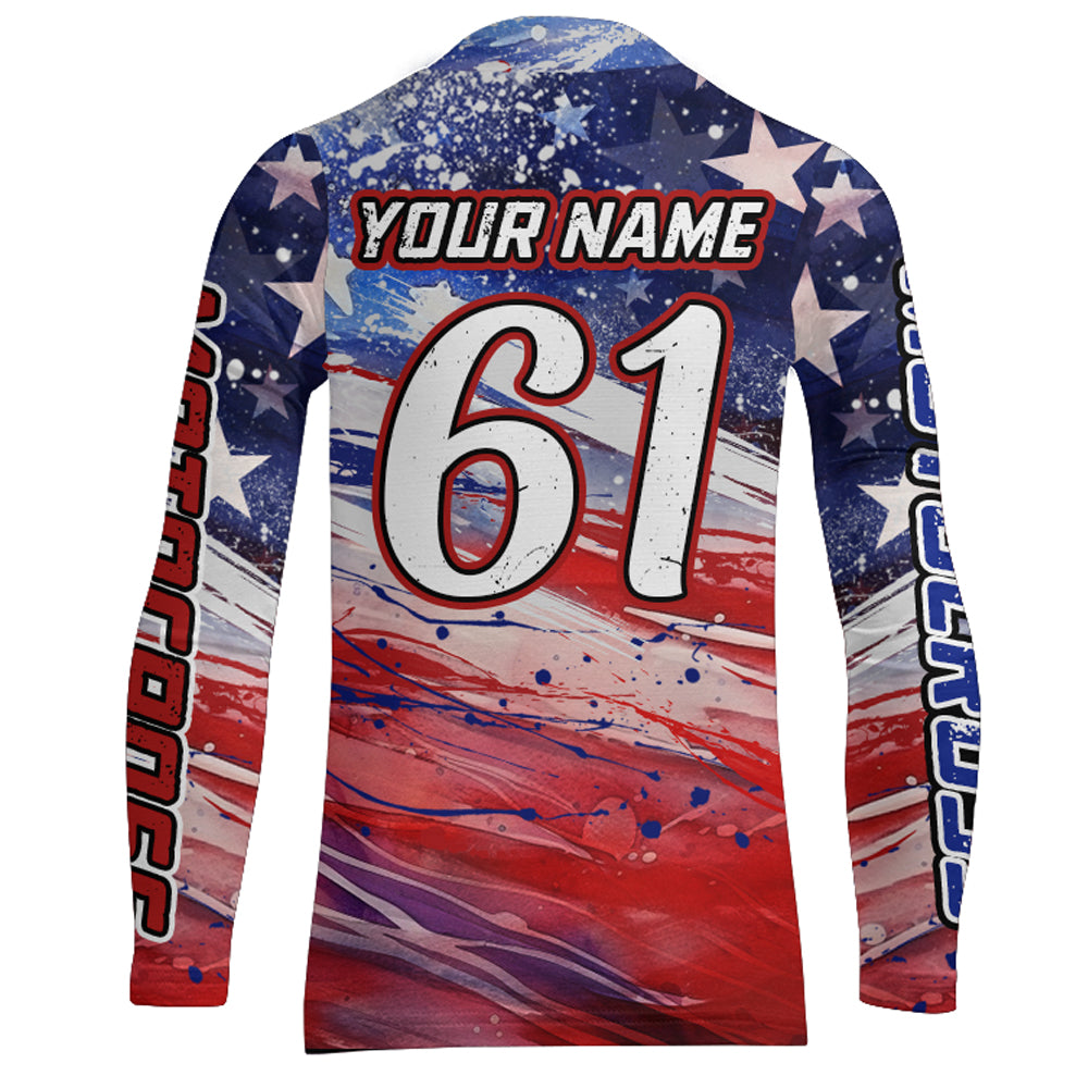 American Flag Racing Jersey UPF30+ Motocross Dirt Bike Shirt Youth Men Kid Women Patriotic XM99