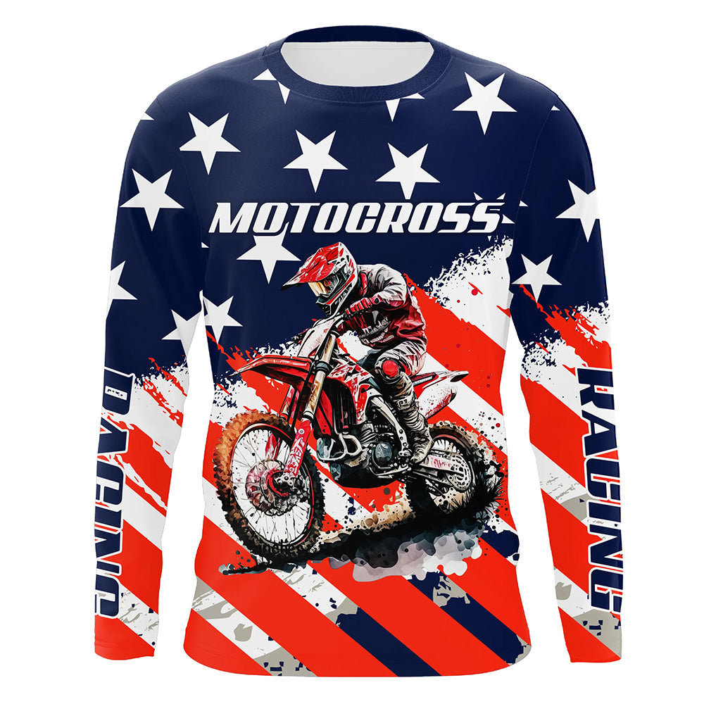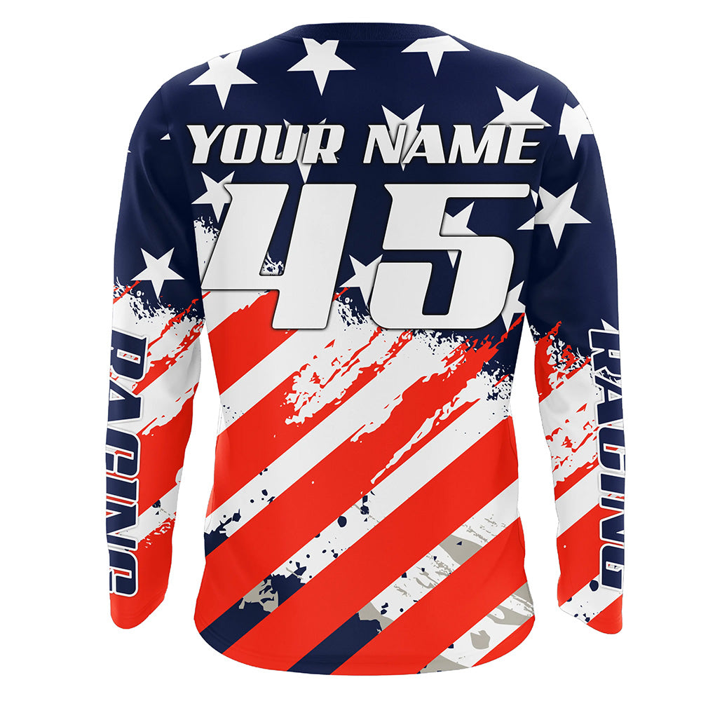 American Flag Racing Jersey UPF30+ Youth Motocross Shirt USA Custom Dirt Bike Shirt Boys Girls Men XM10