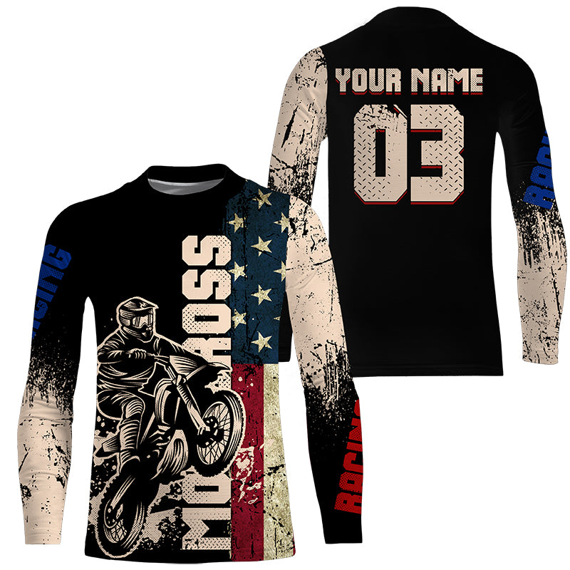 American Personalized Motocross Jersey UPF30+ MX Racing Shirt Dirt Bike Patriotic Off-road NMS1189