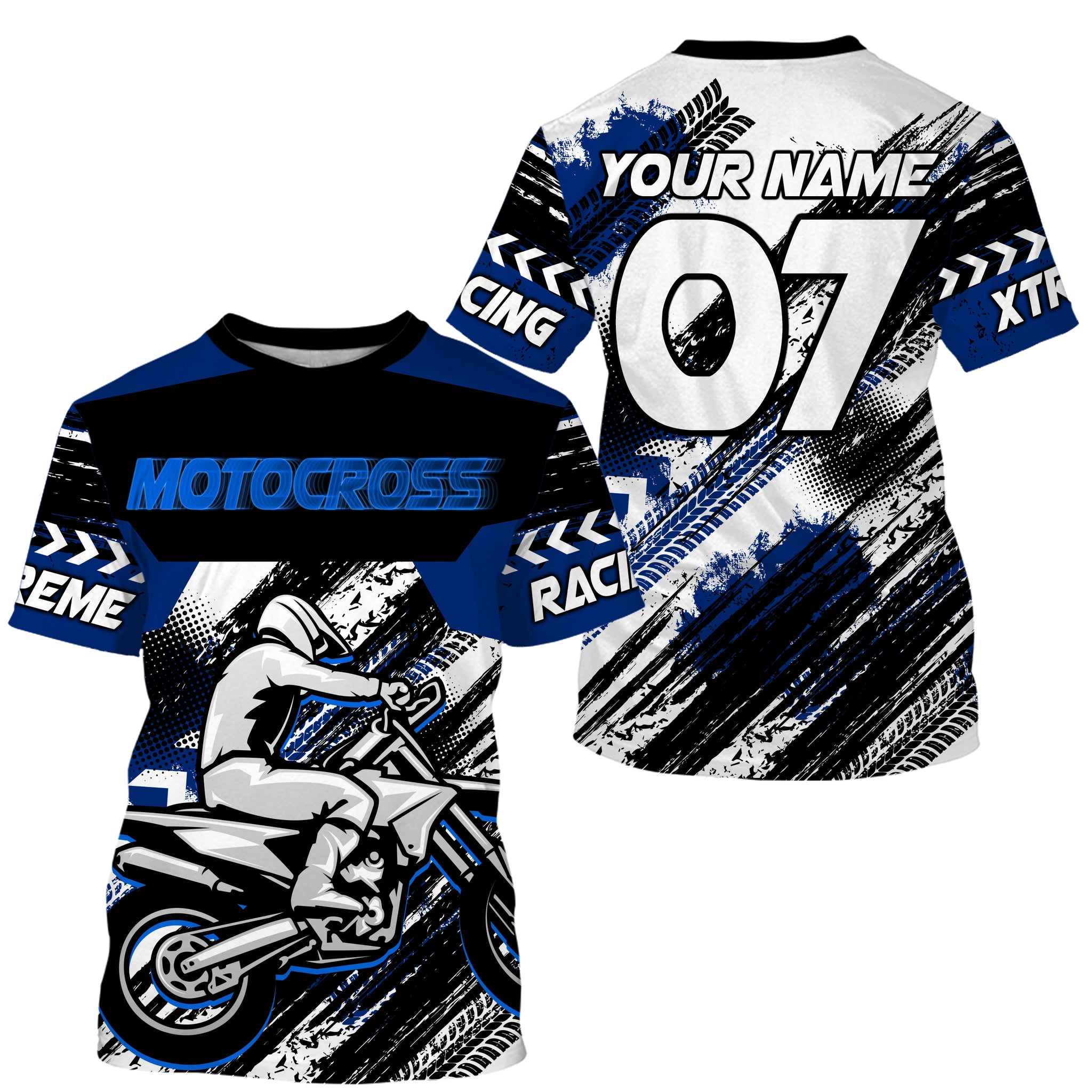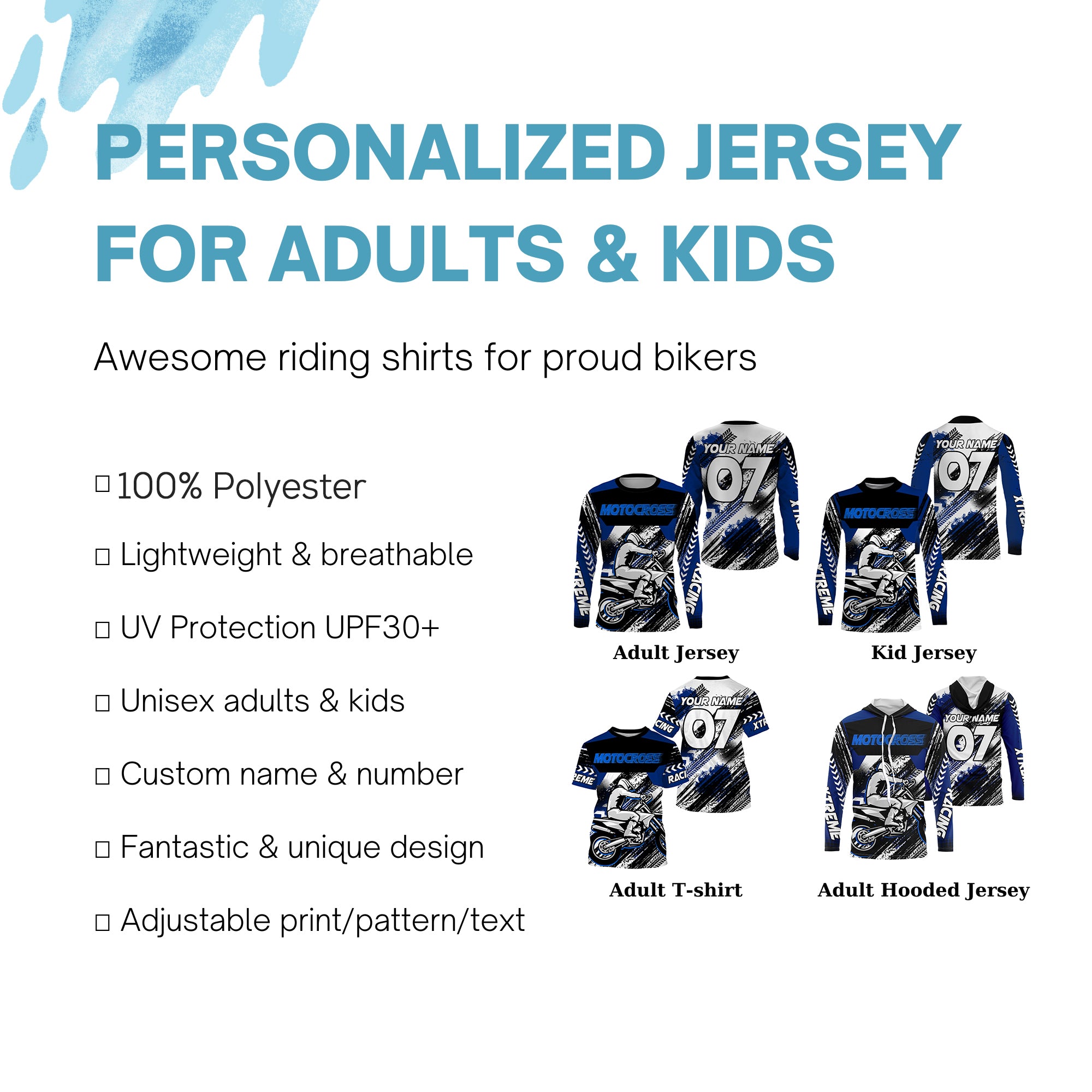 Blue custom Motocross jersey UV protective MX shirt for kid men women dirt bike racing racewear PDT65