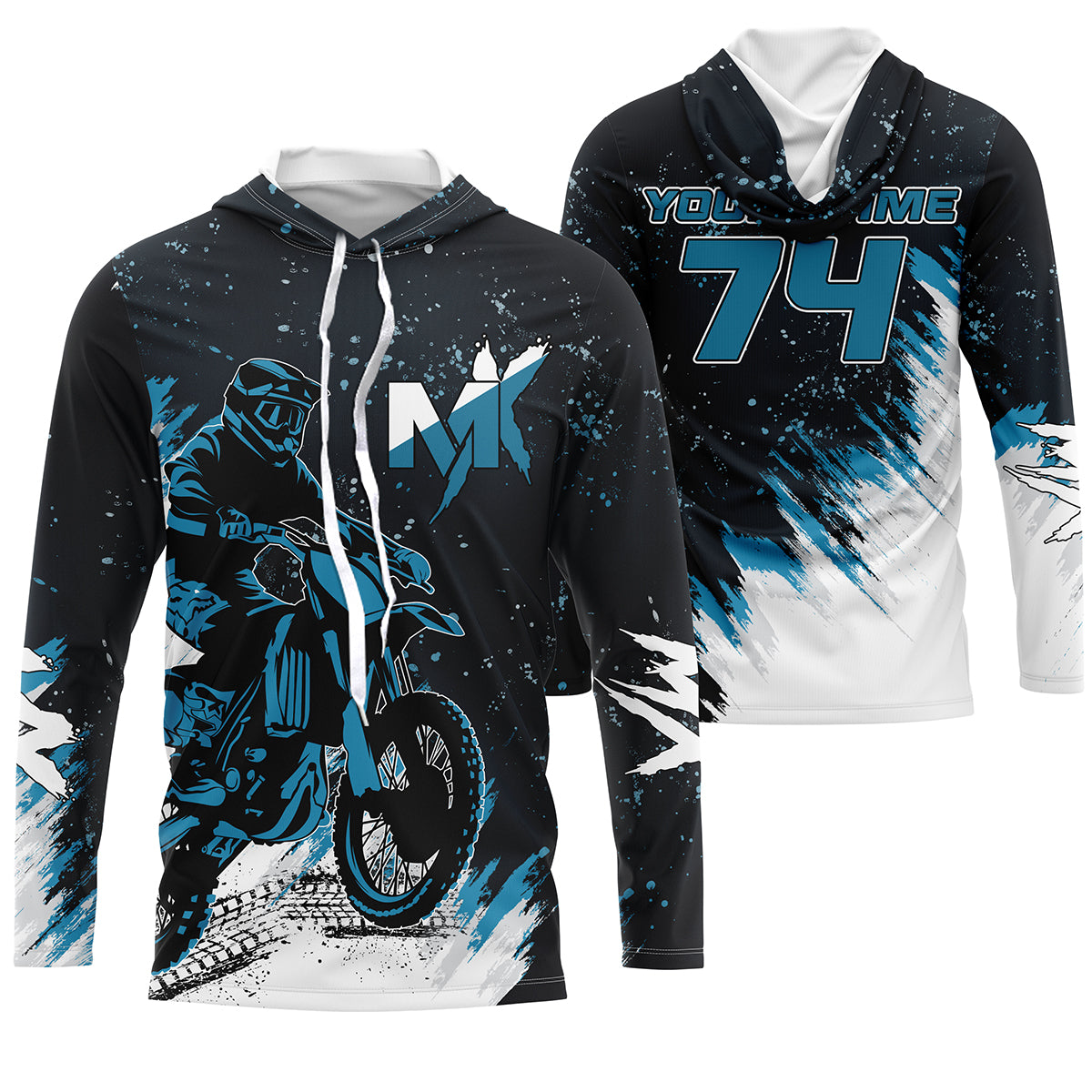 Blue customizable youth MX jersey UPF30+ dirt bike men women kid off-road racing motorcycle shirt PDT59