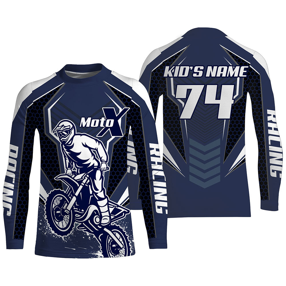 Blue Motocross Racing Jersey UPF30+ Custom Dirt Bike Shirt Men Youth Women MotoX Long Sleeves PDT479