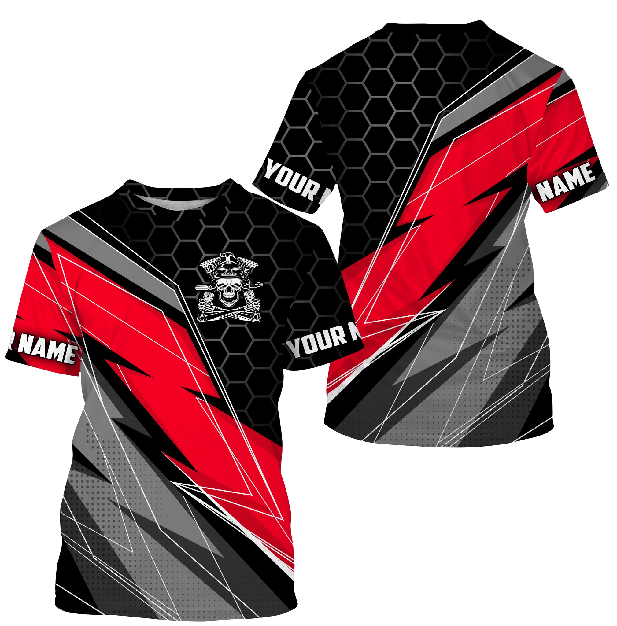 Personalized Riding Jersey T-shirt Hoodie, Motocross Racing Dirt Bike Motorcycle Off-Road Biker Red| NMS278