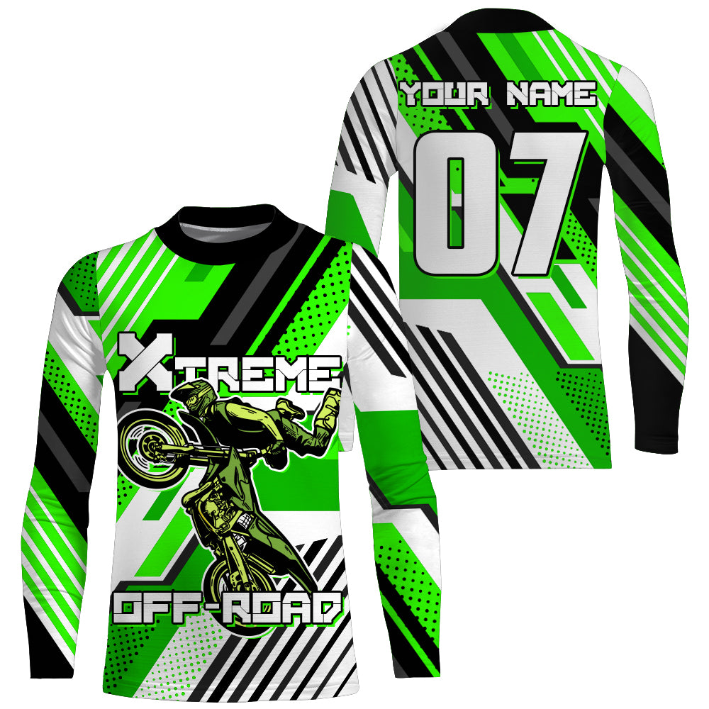 Custom Dirt Bike Jersey Green UPF30+ Youth Men Women Motocross Supercross Racing Shirt Extreme NMS1371