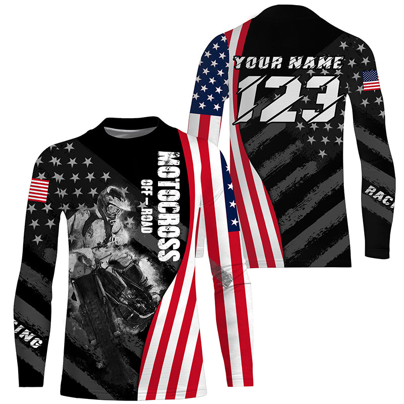 Custom dirt bike jersey UPF30+ Patriotic motocross off-road American flag extreme MX racing shirt PDT277