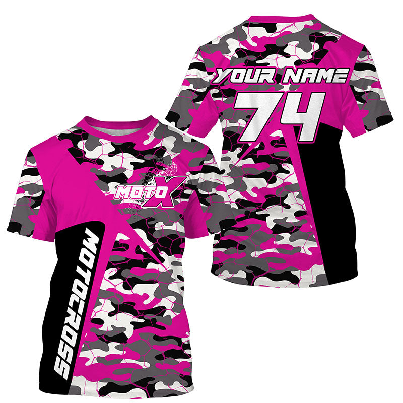 Custom Kid Men Women Dirt Bike Jersey UV Protective Extreme Pink Camo Motocross Racing Shirt PDT375