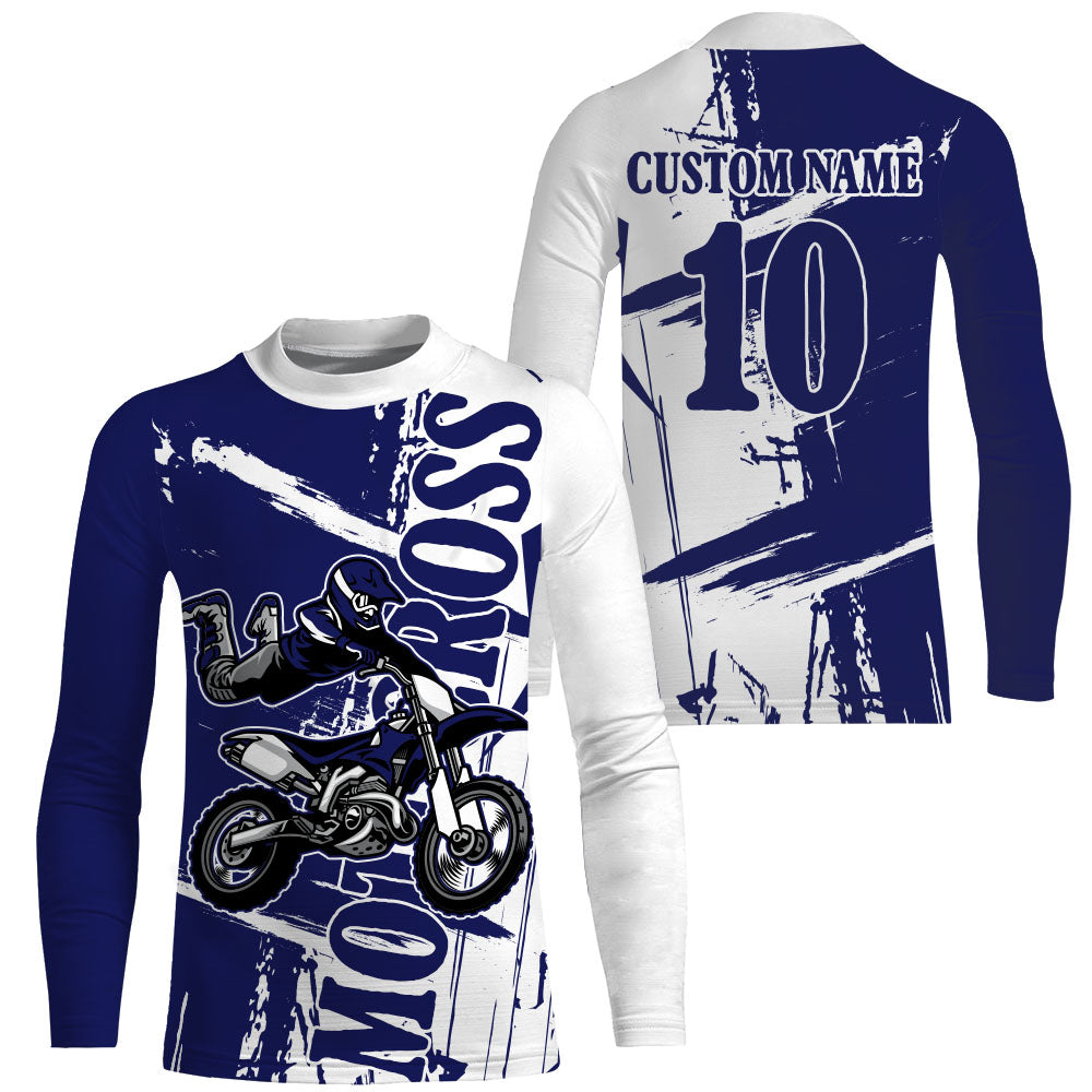 Custom Motocross Jersey Blue UPF30+ Youth Men Women Dirt Bike Shirt Racing Long Sleeve NMS1335