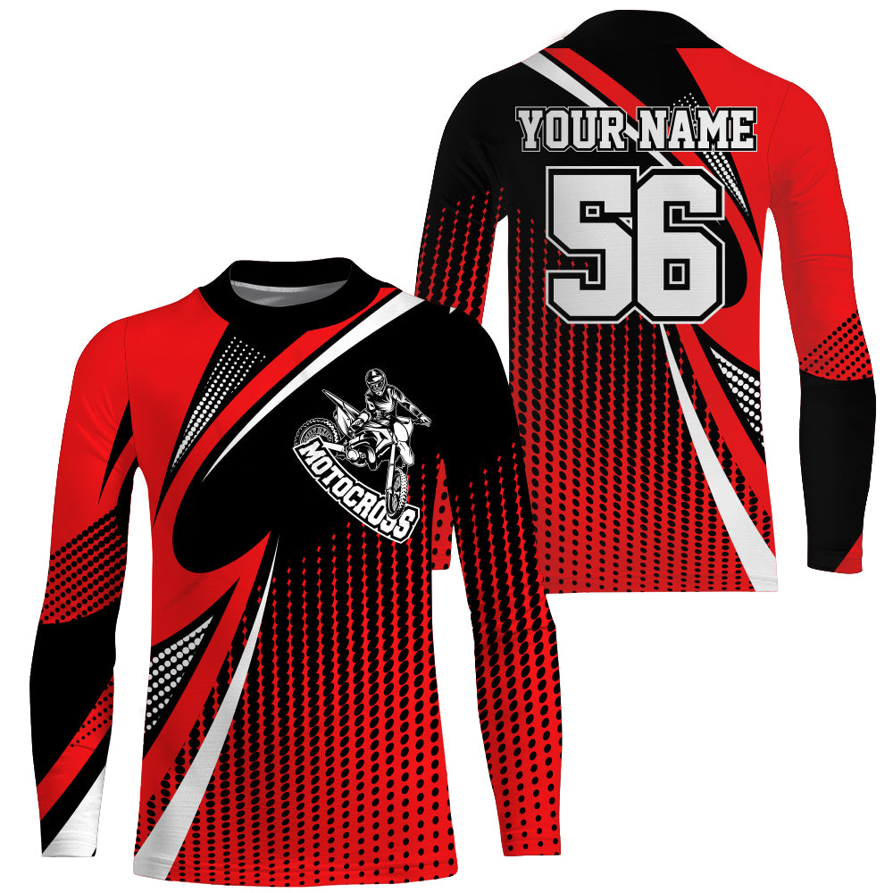 Custom Motocross Jersey Youth Men UPF30+ Red Dirt Bike Shirt MX Racing Off-road Riding Motorcycle NMS1413