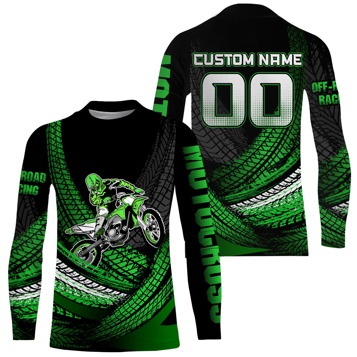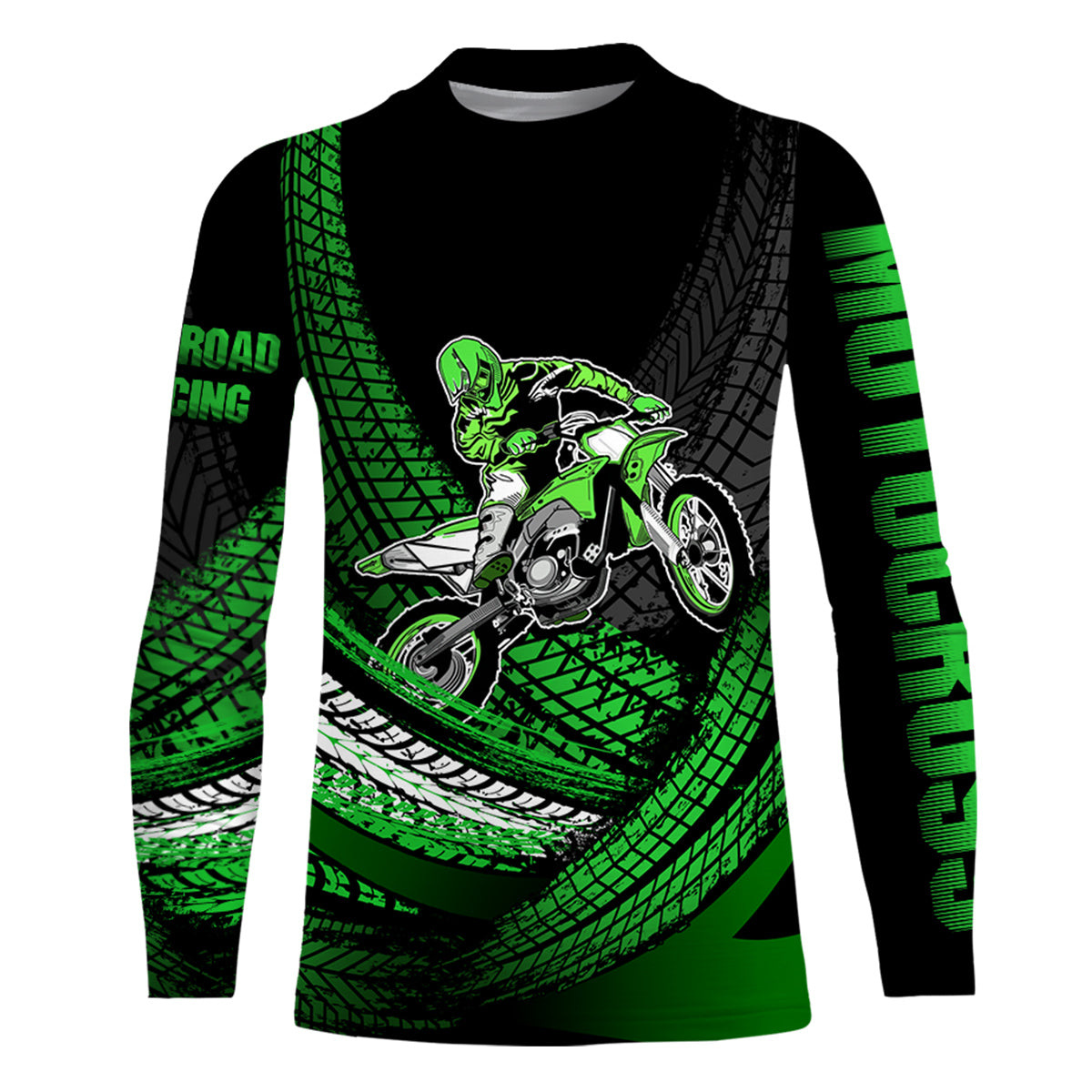Dirt Bike Jersey Youth Men Kid UPF30+ Motocross Riding Shirt Green Motorcycle Jersey XM222