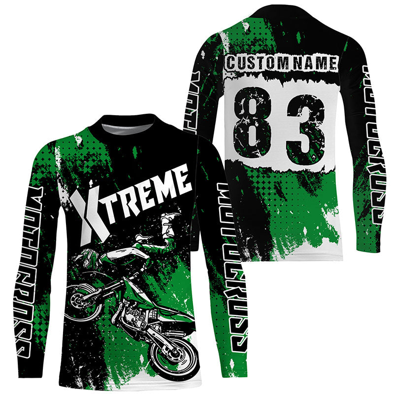 Extreme custom kid adult green Motocross jersey UPF30+ dirt bike long sleeve motorcycle shirt PDT392