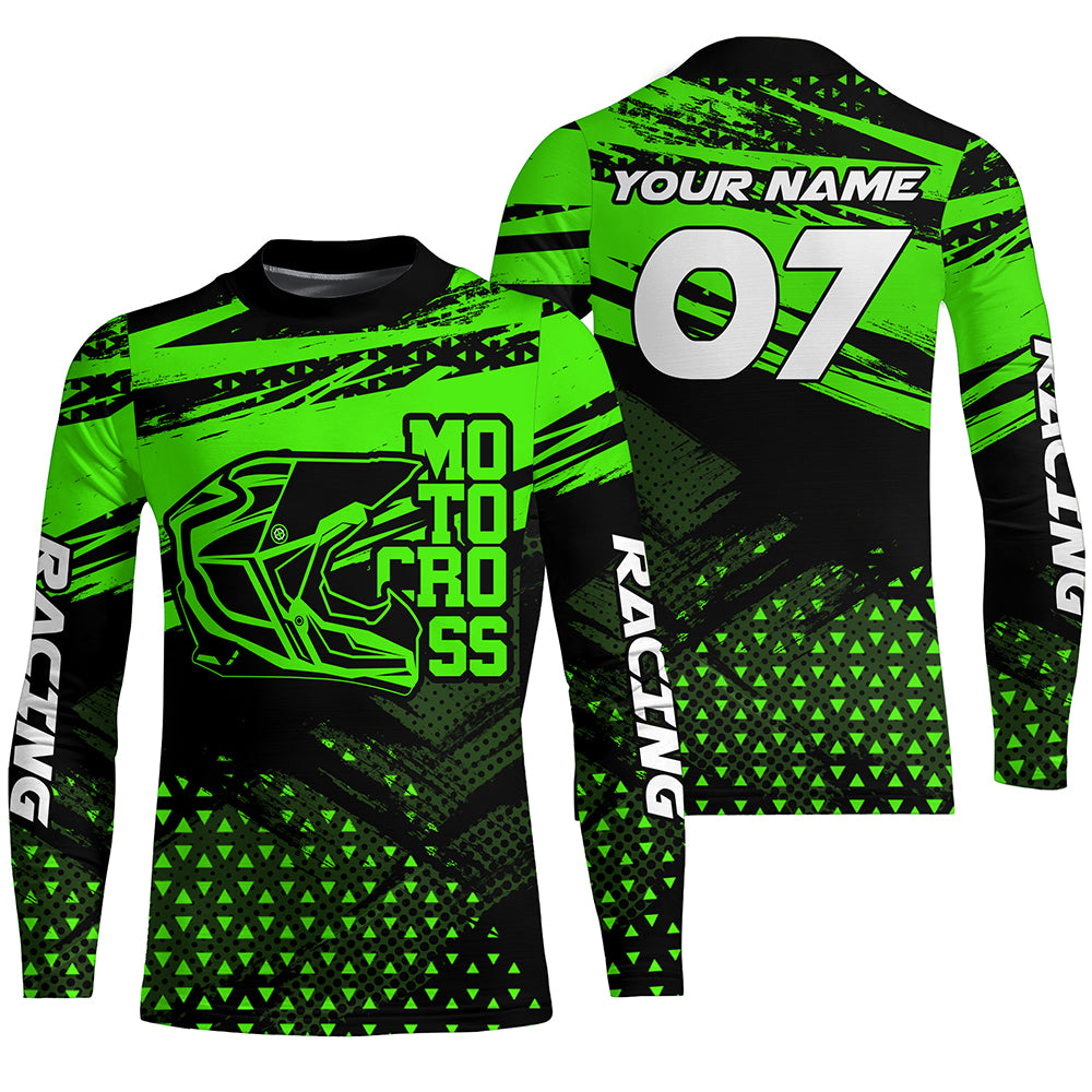 Green Dirt Bike Jersey Men Kid Women UPF30+ Custom MX Riding Shirt Motocross Off-Road Motorcycle PDT602