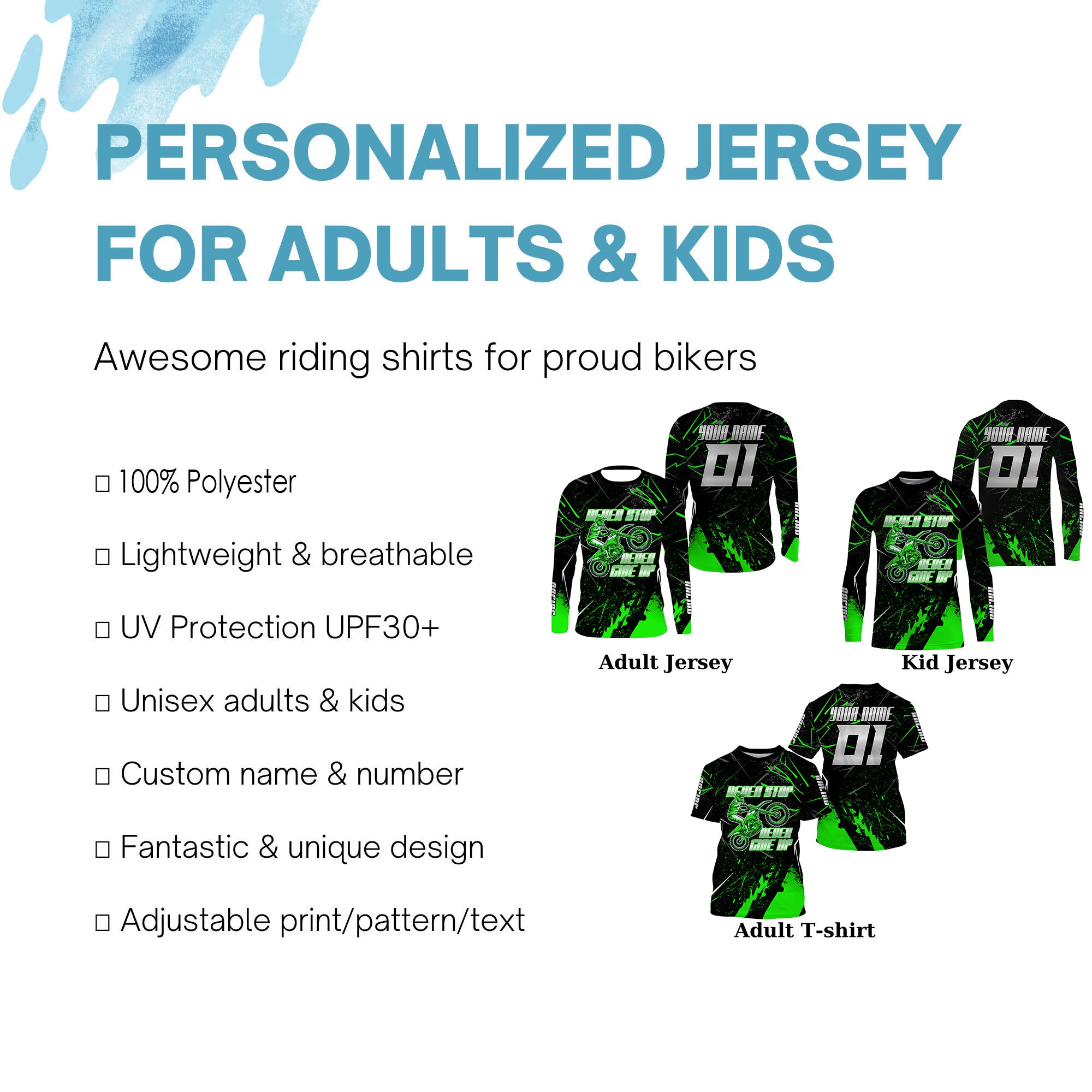 Green kid men women Motocross jersey UPF30+ extreme custom dirt bike racing shirt off-road PDT388