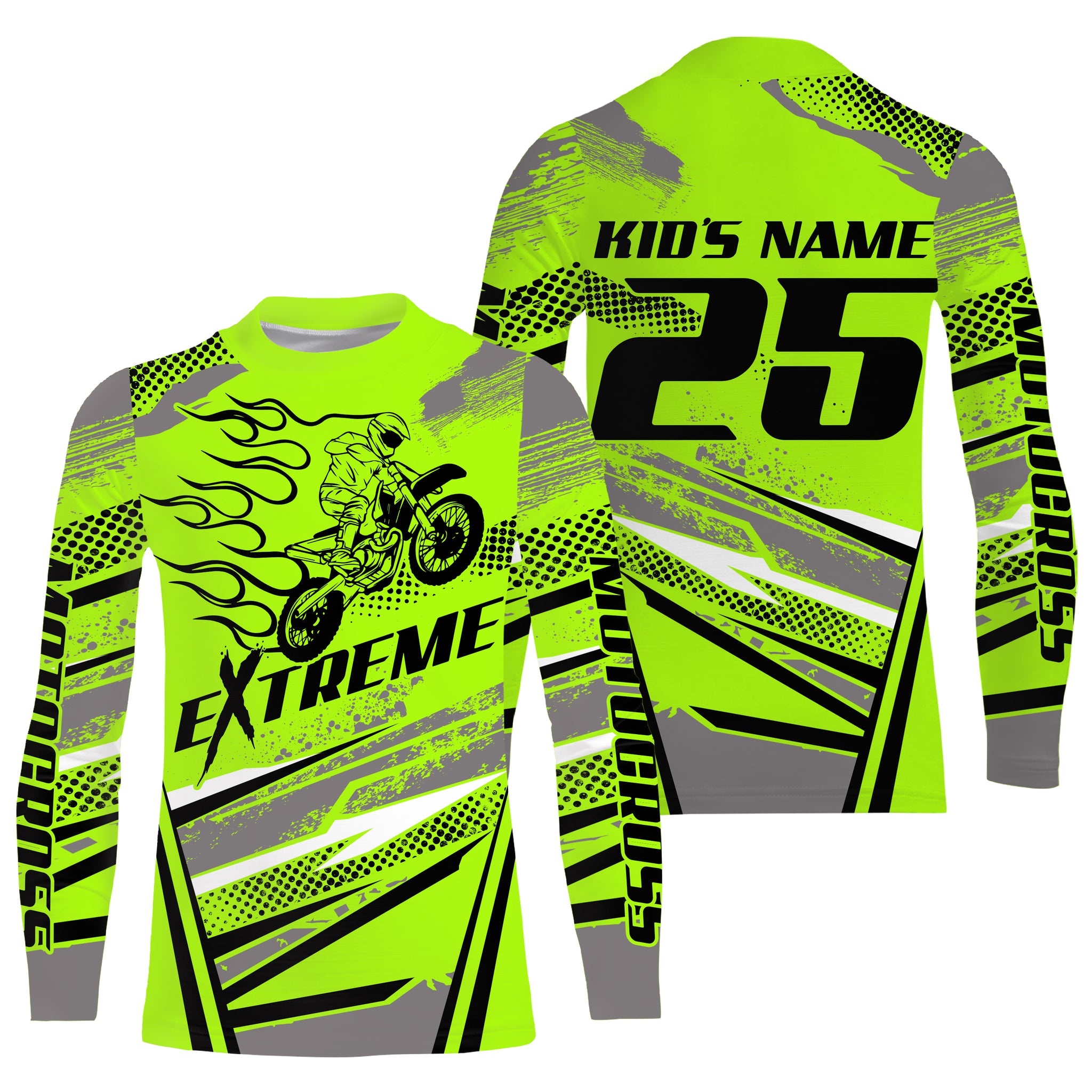 Green MX custom jersey UV protective youth kid adult extreme racing dirt bike motorcycle shirt PDT86